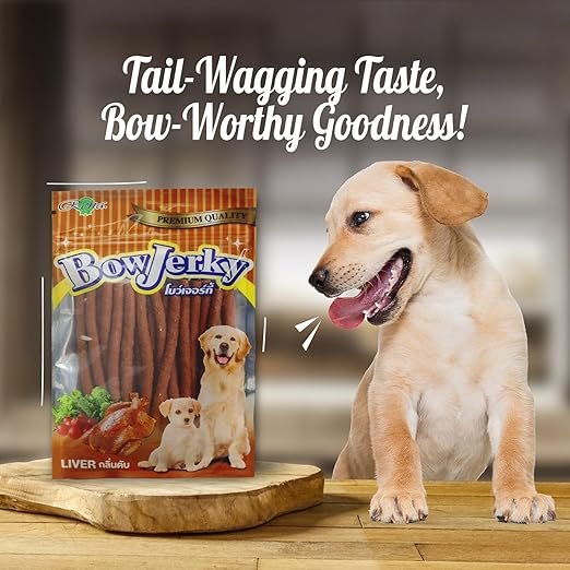 • THE PERFECT MELT- IN your dog’s mouth snack for training rewards, sensitive teeth, sick days, or all-around pampered pets, great for dogs of all ages. BOW JERKY CHICKEN STICKS are high in protein and low in fat. It is an energy-packed dog treat with a great source of nutrients.
