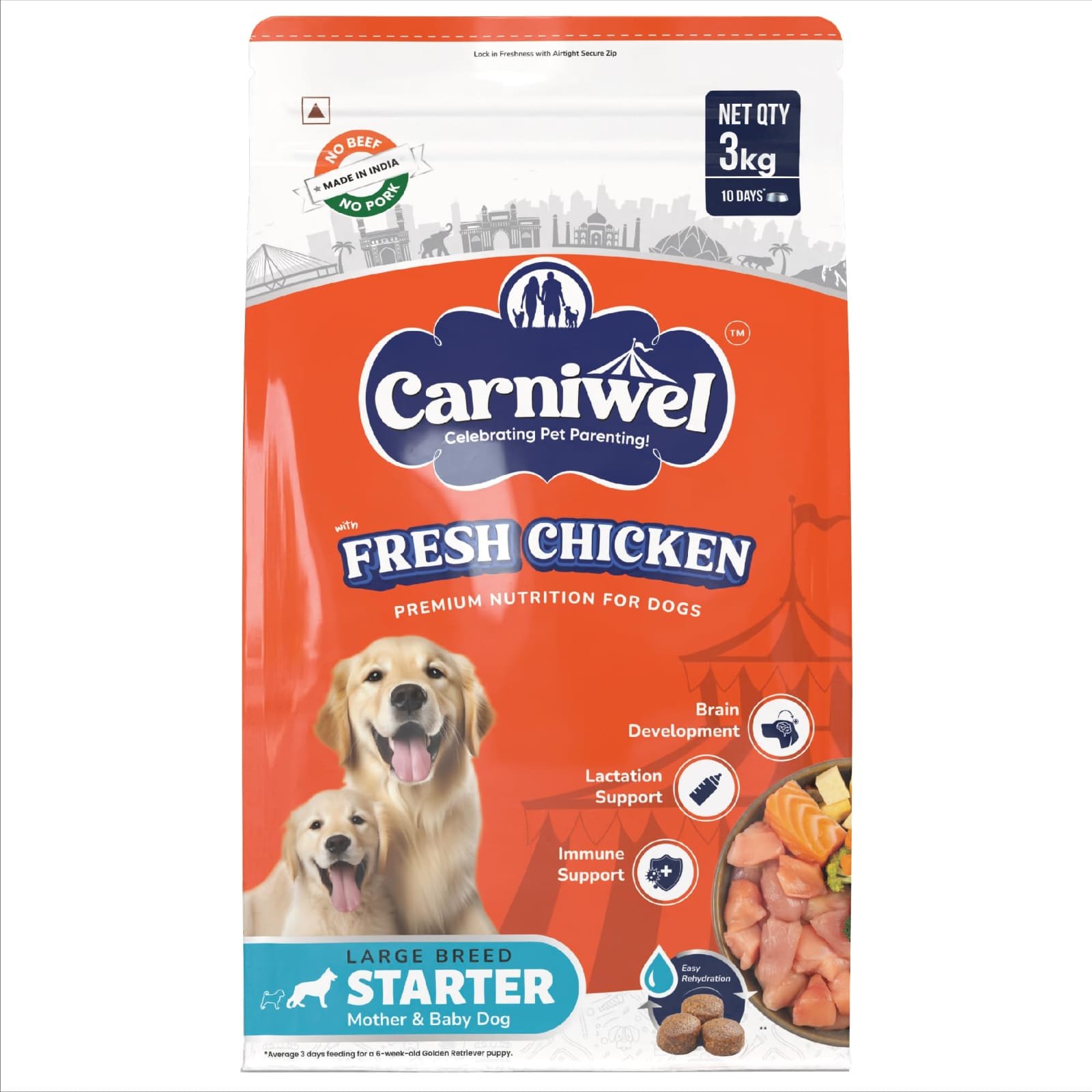 Carniwell Dog Food Starter for Large Breed is a premium-quality nutritional solution designed specially for large-breed puppies and nursing mothers. Crafted with fresh lamb, Antarctic krill, and high-quality marine lipids, this formula delivers the precise blend of proteins, fats, and essential nutrients needed for strong muscle development, brain function, and a glossy coat. Each ingredient is carefully selected to meet the demanding energy and growth needs of large breed dogs, ensuring complete and balanced daily nourishment.