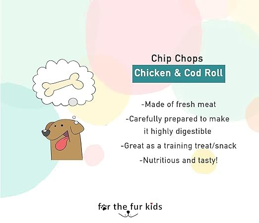 Chip Chops Chicken Codfish Rolls Dog Treat, Highly Nutritional & Digestible, Suitable for All Dog Breeds, Easy to Digest, No Artificial Flavors Added - 70gmChip Chops Chicken Codfish Rolls Dog Treat, Highly Nutritional & Digestible, Suitable for All Dog Breeds, Easy to Digest, No Artificial Flavors Added – 70gm