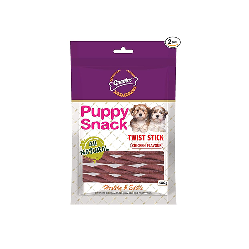 Gnawlers Puppy Snack are the ideal healthy and edible snacks for puppies. Gnawlers puppy snack Twist Stick presents a safe outlet for your puppy to express its tendency to chew. The protein abundant assorted Chicken Stickes, when chewed, assist in rubbing off the tartar and plaque formation from the teeth and gums of the puppy, facilitating the incoming of fresh breath. Calcium contributes towards the health of bones and teeth of the your lovable puppy.