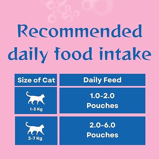 • Feed 1–2 pouches per day depending on your cat’s age, size, and activity level.
