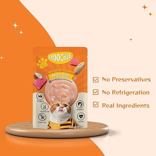 • FLAVOURFUL: Indulge your cat in the irresistible flavour of mousse with salmon and Taurine, which is specially formulated to promote healthy growth and development. This delectable option from Moochie Wet Cat Food is packed with essential nutrients, vitamins, and protein, ensuring that your beloved cat receives the nutrition they require for strong growth and vitality.