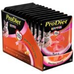 Indulge your feline friend with the irresistible flavors of ProDiet Tuna Wet Food. Crafted to perfection, this delectable blend combines the savory essence of tuna with the rich, creating a culinary experience your Kitten will adore. Formulated with meticulous care, each ingredient is selected to provide balanced nutrition, catering to your cat’s carnivorous instincts. Tuna, renowned for its omega-3 fatty acids, promotes healthy skin and coat, while Tuna offers a protein-packed punch essential for muscle development. Enhanced with fish extract, natural flavors, and a carefully curated array of gelling and thickening agents. The inclusion of food starch ensures a satisfying texture that will leave your cat purring for more. With ProDiet Tuna, maintaining your feline’s well-being is effortless. Simply follow the feeding guidelines provided, storing the food in a cool, dry place and ensuring any remaining portions are sealed to preserve freshness. Whether served once or twice daily, your cat will relish every mealtime moment. Prioritize your cat’s health by keeping feeding and water dishes pristine, ensuring a hygienic dining experience. With ProDiet Tuna, you’re not just providing nourishment; you’re delighting your beloved pet with a gourmet feast tailored to their discerning palate.