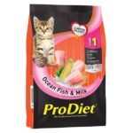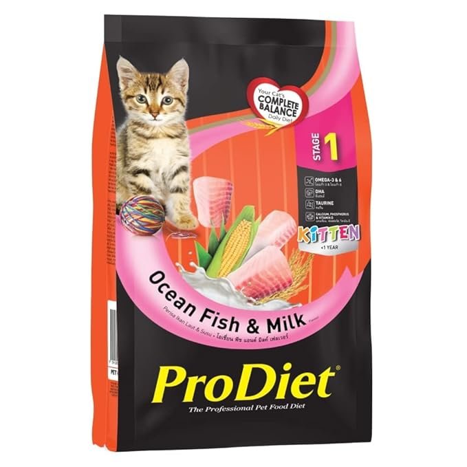 ProDiet Kitten Ocean Fish & Milk Dry Food is a complete balanced nutrition for the kittens. Protein from ocean fish and milk promote growth by providing healthy bone, healthy immune system and energy.